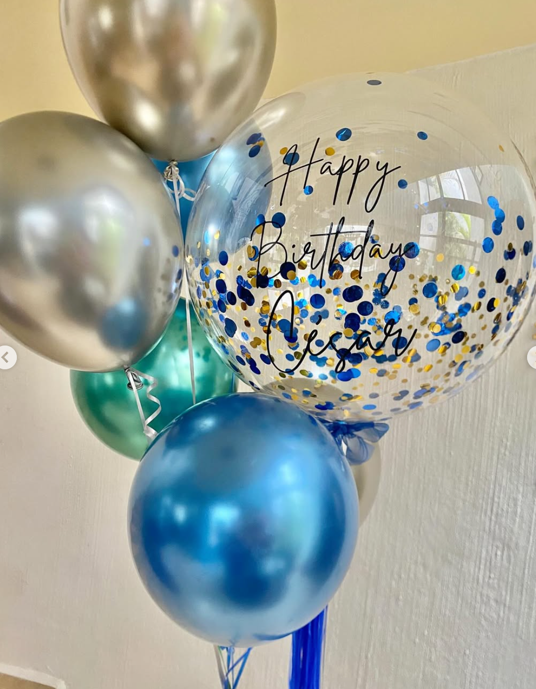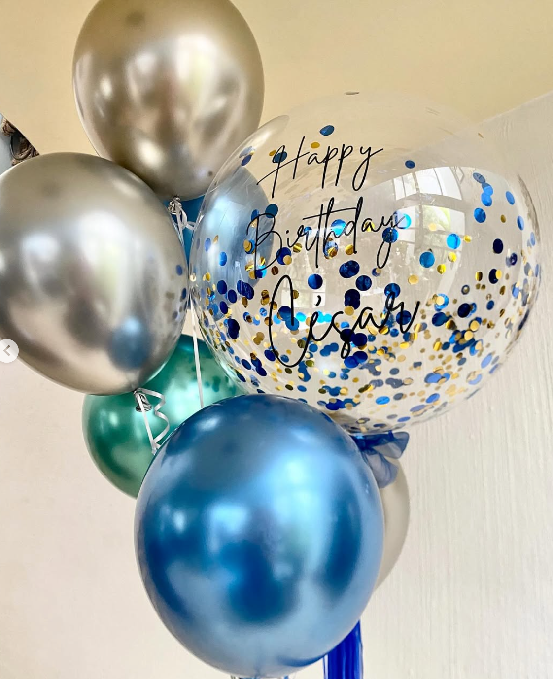 Este arreglo incluye: - 1 globo BURBUJA 18" transparente con papelitos multicolor, inflado con helio, con tassel, atado a un contrapeso y 6 globos látex con helio. Incluye la frase escrita y decoraciones temáticas personalizables. **La visualización final del producto entregado puede variar en respecto a esta imagen, ya que el arreglo de globos se elabora a mano.**