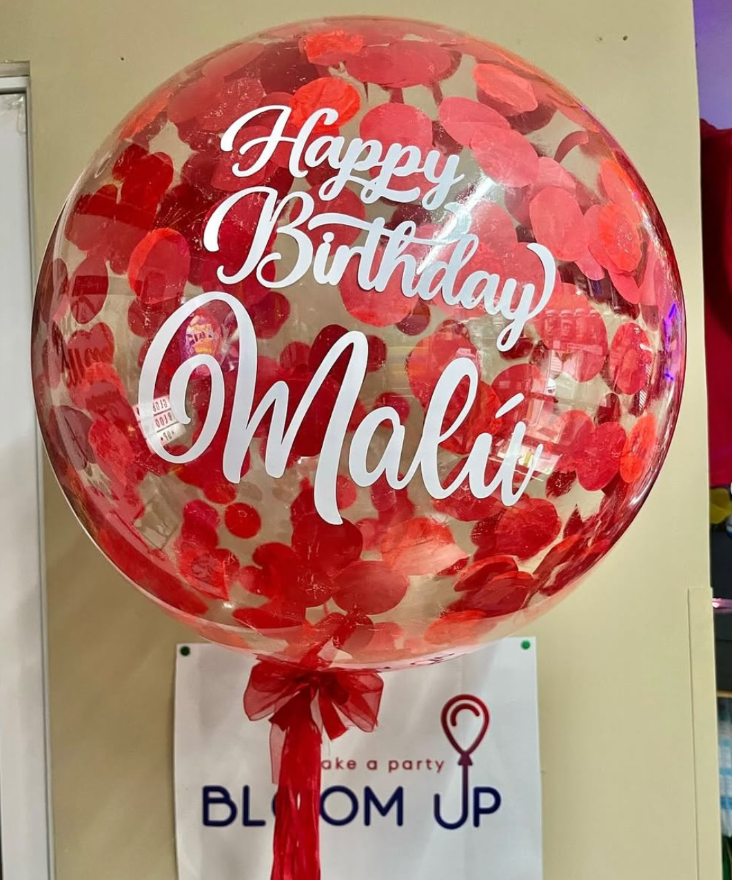 Este arreglo incluye: - 1 globo BURBUJA 18" transparente con papelitos multicolor, inflado con helio, con tassel, atado a un contrapeso. Incluye la frase escrita y decoraciones temáticas personalizables. **La visualización final del producto entregado puede variar en respecto a esta imagen, ya que el arreglo de globos se elabora a mano.**