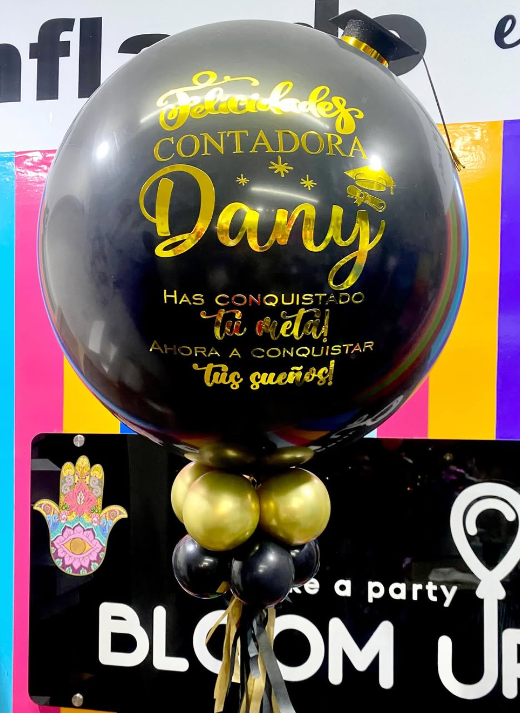 Este arreglo incluye: - 1 globo JUMBO 36" mate, inflado con helio, con tassel, atado a un contrapeso. Incluye la frase escrita y decoraciones temáticas personalizables. **La visualización final del producto entregado puede variar en respecto a esta imagen, ya que el arreglo de globos se elabora a mano.**